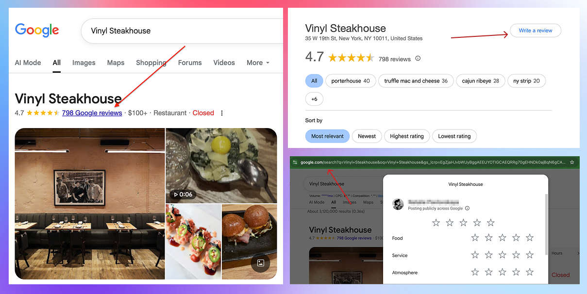 Fallback flow: find your business → click “Write a Review” → copy the URL.