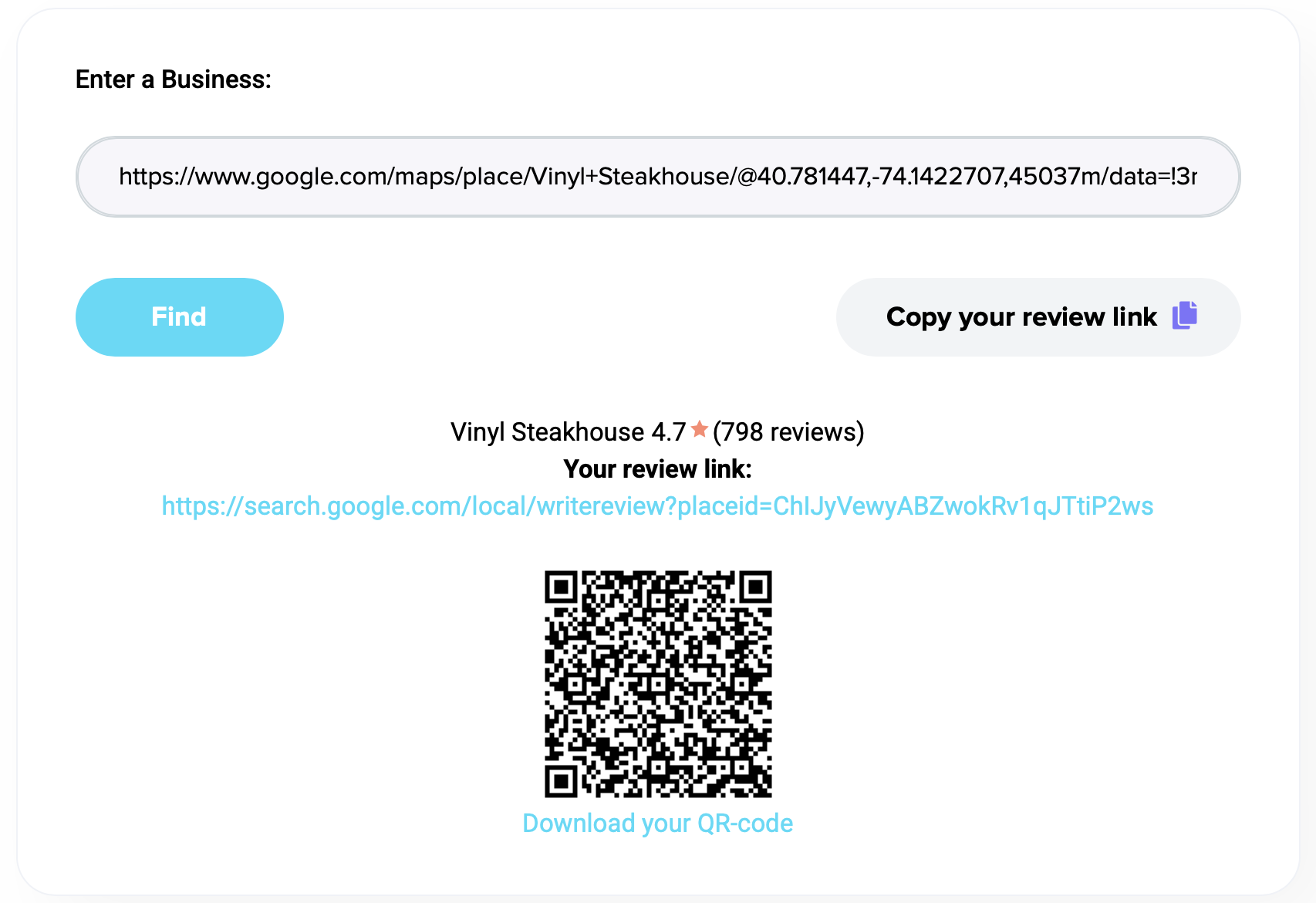 Direct review links reduce friction: customers can leave a review in one click, without searching or extra steps. Save your links once, then reuse them in email, SMS, and QR codes.