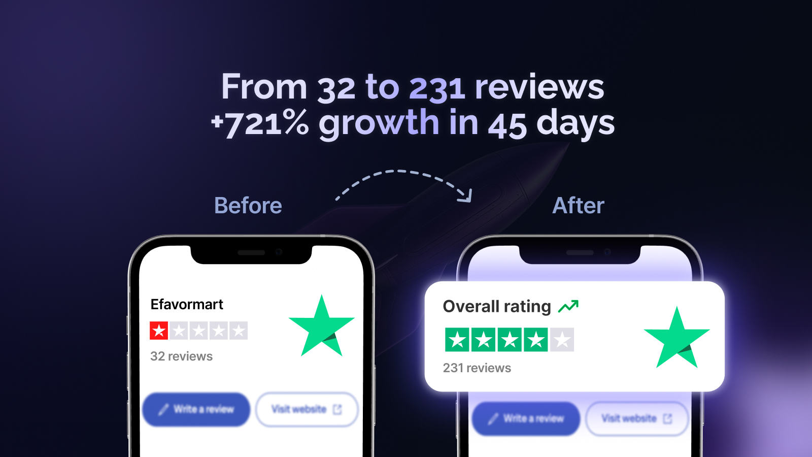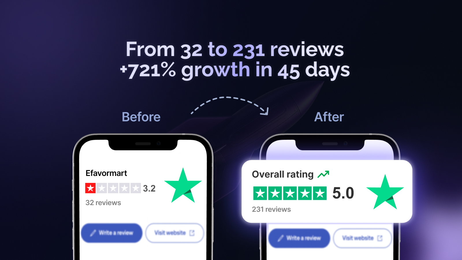 - Trustpilot grew from 32 â 231 reviews in ~45 days